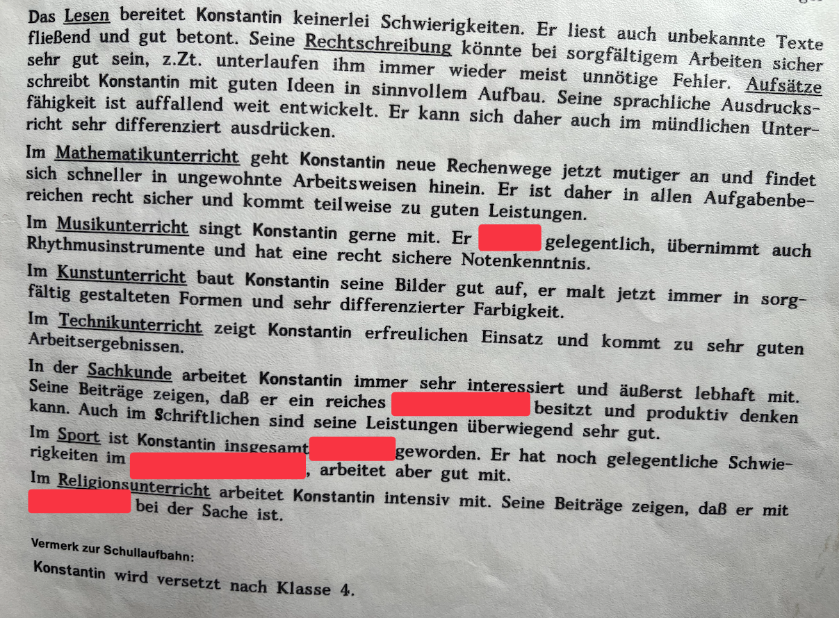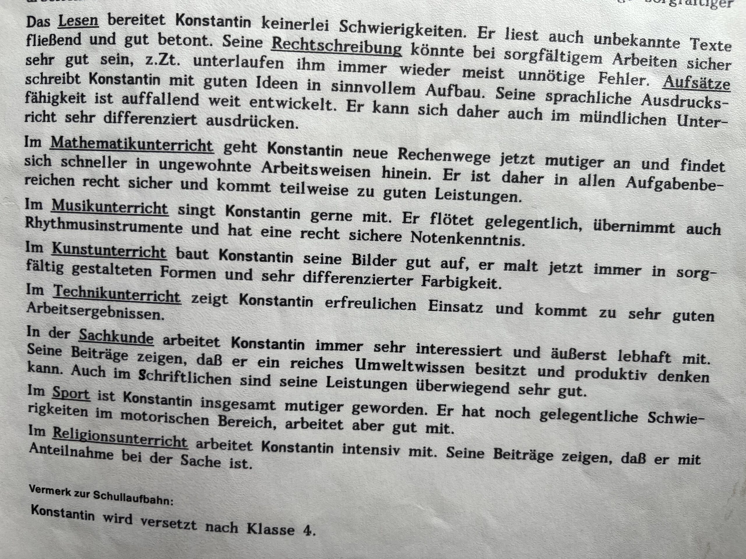 Vervöllständige mein Berichtszeugnis aus der 3. Klasse